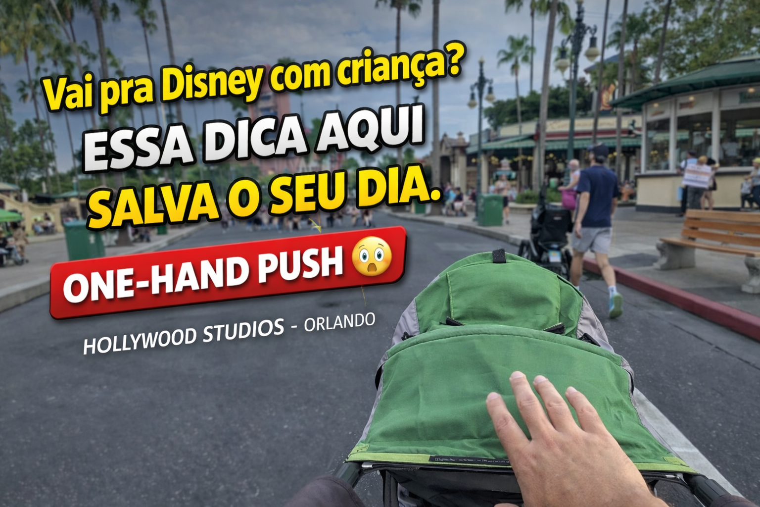Gravamos um vídeo em estilo POV (ponto de vista) dentro do Disney’s Hollywood Studios, empurrando o carrinho com apenas uma mão, enquanto a outra segurava a câmera. E o mais interessante: nossa filha tem 8 anos e pesa cerca de 30 kg. Mesmo assim, o carrinho segue leve, firme e confortável.