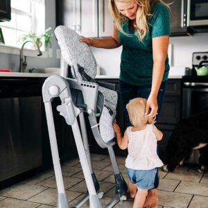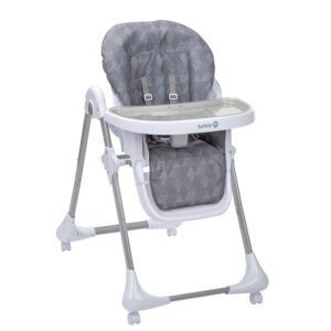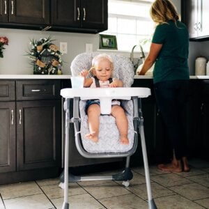 Este modelo de cadeira alta para bebês oferece conforto e estabilidade com 3 posições de reclinação, 6 posições de altura e um apoio para os pés ajustável. Também é fácil de limpar, com uma bandeja removível que pode ser lavada na lava-louças e uma superfície fácil de limpar. Para uma limpeza mais profunda, basta remover a almofada do assento.