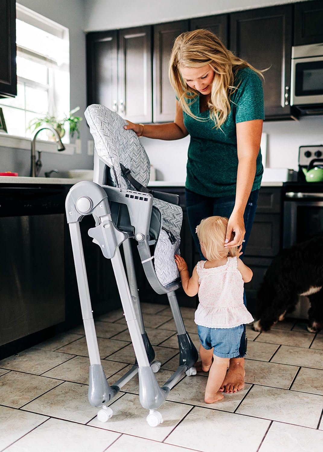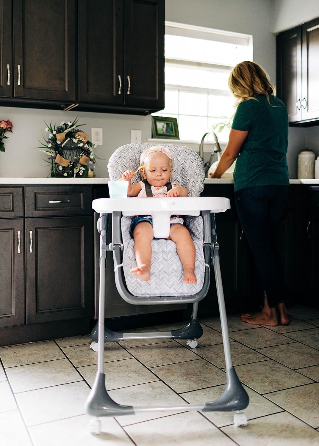 – COMPACTA E FÁCIL DE GUARDAR OU TRANSPORTAR Quando não estiver em uso, a cadeira alta dobrável pode ser guardada em pé ou levada para a casa dos avós no fim de semana.